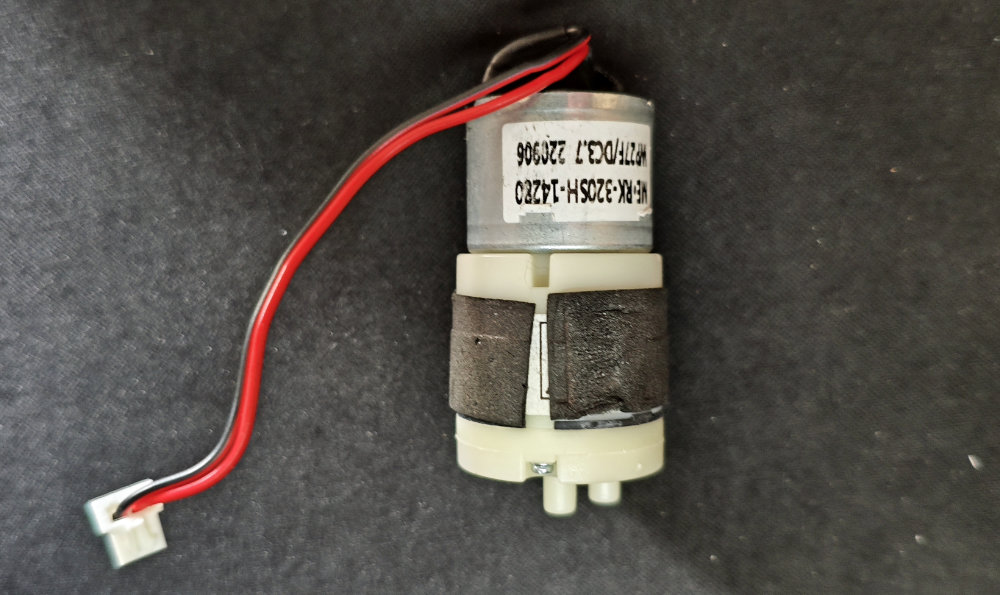 ポンプユニットから全てのチューブを外して、モーター部分のみにして動作させてみましたが・・・やはりモーターは動かない。この時点で、通電している状態が続くと、モーターが結構暖かい状態になっていることに気付きました。