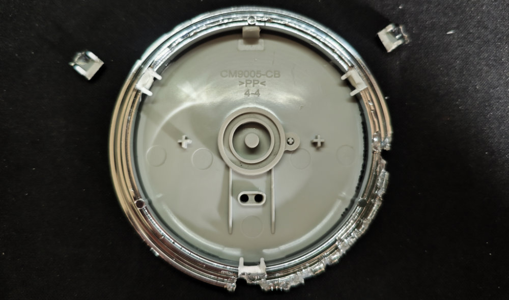 問題は破壊してしまったガワ。銀色リングの3ヵ所の突起は折れてしまったし、また今後も分解する機会があるかもしれないので・・・デッパリ部分を全部削り取ってしまうことにしました。また、銀色リングの外周部分と、カップ側のエッジ部分はだいぶ歪んでしまったので、コレも曲げたり削ったりしてリングとカップがきちんとハマるように成形します。