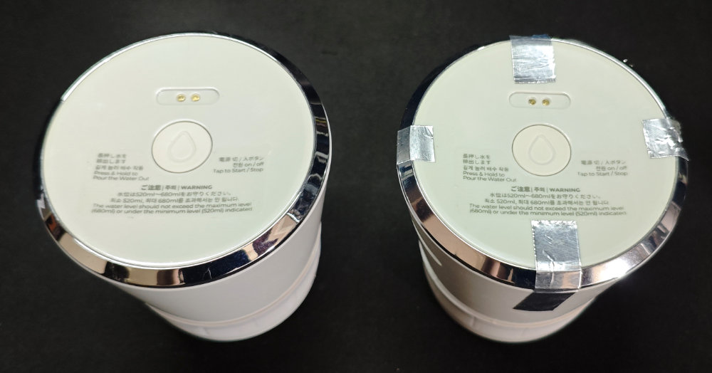 というわけで、気を取り直して別のより頑丈なテープ(アルミテープ)で合体させました。新品な左側と比較して・・・若干みすぼらしくなったけど、動くし使えるので気にしないことにします。