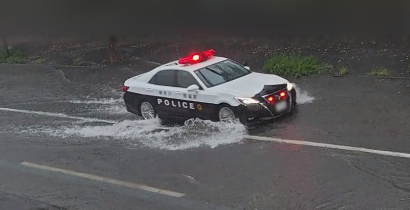 さすがにパトカーはかなり徐行して水飛沫控え目(笑)。しかし・・・なぜに皆さんはこのような冠水した道路でもガンガン進んでしまうんでしょうね。ワタシならちょっと高い場所等を探して避難して停止して待ちます・・・きっと。
