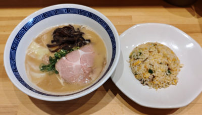 とはいえ博多ラーメン(750円)に半チャーハンセット(350円)。前回も思ったけど・・・スープが少な目な気もします。
