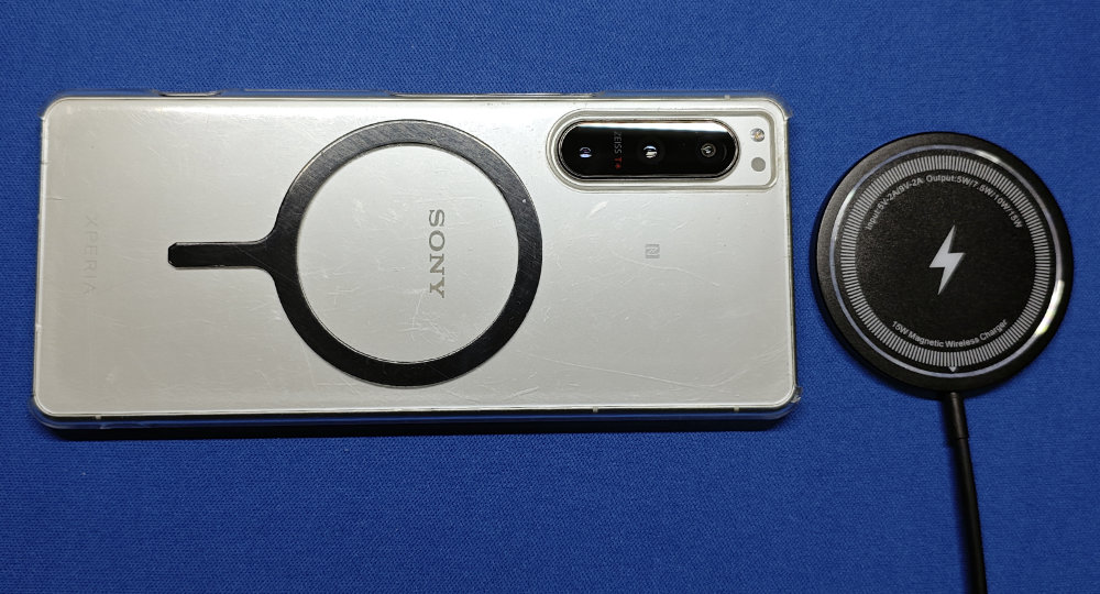 一応 Qi での充電対応した Xperia 5 IV のケースに貼ってみました。位置合わせすると、SONY ロゴより若干下側になりますな。コレで MagSafe 充電器で位置ずれを気にせず充電可能になりました。まぁ、滅多にワイヤレス充電するワケではないのでなくてもイイんですけど。