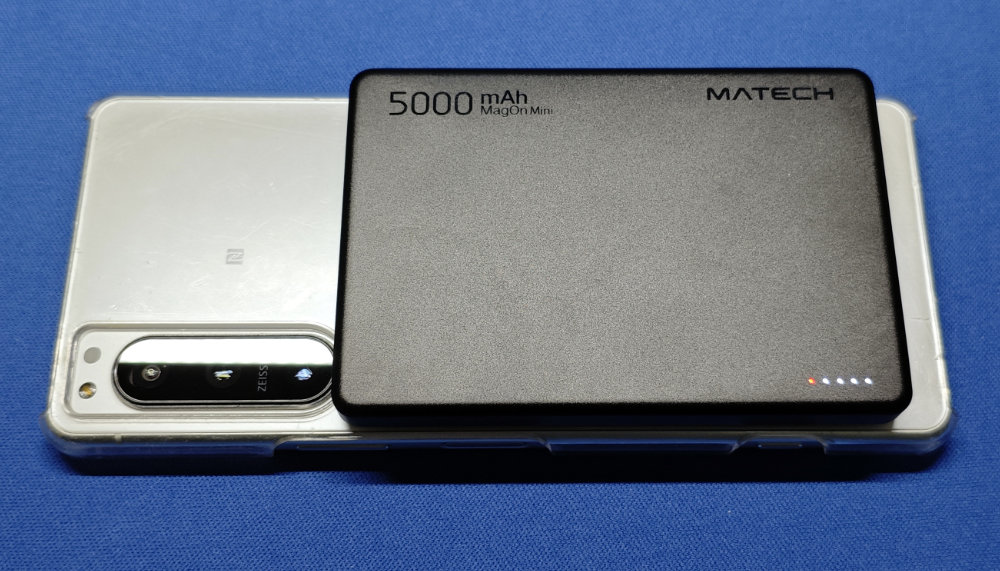 iPhone 12 mini 用に用意した MATECH の MagSafe 対応モバイルバッテリーもイイ感じでフィット。もちろん充電もできちゃいます。Xperia 5 IV の幅って、iPhone 12 mini とほぼ同等なので、このモバイルバッテリーの一体感もなかなか良いです♪