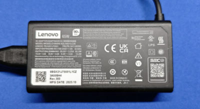 付属の充電アダプタは Type-C 出力なもの。65W の PD 電源と考えると結構大きくて取り回ししにくいので、別の PD 電源と USB ケーブル使うことがメインになる気がします。