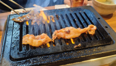 ラストオーダー前にはお腹いっぱいになれたので、45分という時間的には物足りないということはなかったのですが、慌てて焼いたり食べたりするのでなかなか落ち着けません。お値段の割に量も食べれるし味も悪くないので、なかなか面白いお店だな~という感想ですが、慌ただしいのでランチで再訪があるかというと・・・ないかもしれない(笑)。