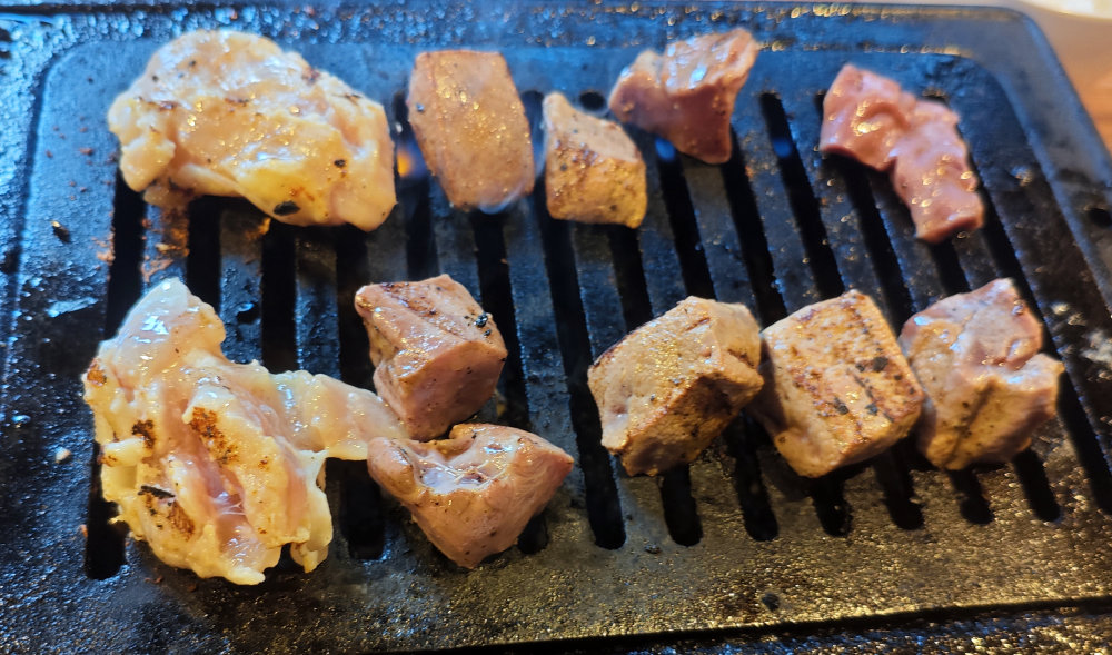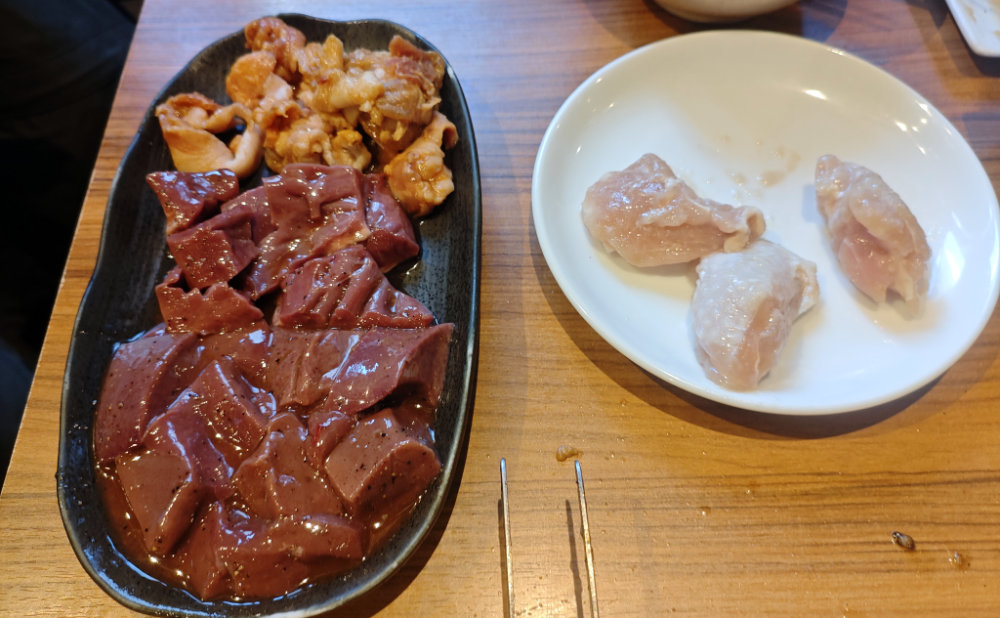 2セット目はハツとレバー、 糀鶏、そしてネックピートロのお代わり。その後モモのタレ味も食べてみたけど、ネックピートロのミソ味が一番美味しいと結論に。