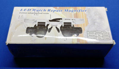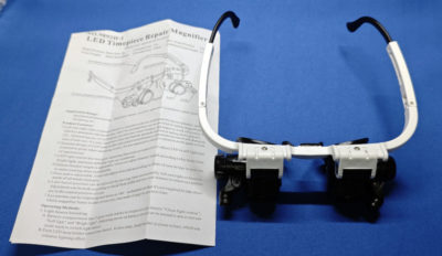 そんなわけで、両手が自由に使えてピント合わせは顔の位置調整で簡単にできるかな、という発想で眼鏡型の拡大鏡を買ってみたワケです。同梱品は説明書と本体だけです。