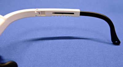 耳掛けの位置も調整できます。本体は軽くて、レンズ部分の重量もほとんど気にならないし、頭が下向いてもズレてしまうということも、ちゃんと調整しておけばほぼないのは優秀です。