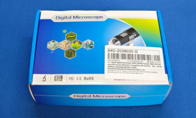 この見た目の Digital Microscope ですが、ケーブル末端のコネクタ形状やら、拡大倍率、撮影素子の解像度等で、色々な SKU が存在しますので最安値を狙ってポチると失敗します。拡大倍率はそこまで気にしませんが、解像度は静止画で 1920×1080 は欲しいと思って最安値なヤツ(640×480)は避けました。一応狙った通りの品が到着したっぽい。