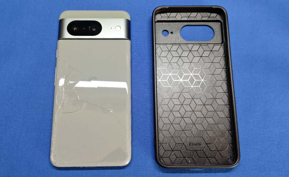 Pixel 8 の運用を始めてから、最初に自宅から持ち出した時・・・銀行 ATM の前でカバンの中から財布を出そうとした時に、一緒に出てきてしまって床に落下したのです。慌てて拾い上げて破損個所をチェックした際には・・・特に破損も無さそうだし、画面もちゃんと点灯するので「あぶねー」とか心の中で呟きつつ、そのまま使い続けていました。