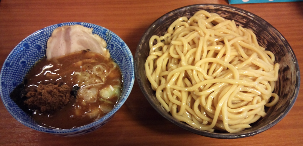 オーダーは節つけ麺・冷(750円)。麺の量は小・中・大すべて同じ料金だそうで、意味もわからず大盛りにしちゃいました(笑)。