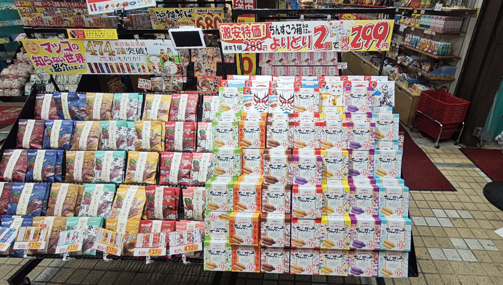 ちんすこうのハナシが出たのでココでお土産ネタ。ワタシ、色々と戴く各地からのお土産の中でも、なぜかちんすこうは別格扱いです。とはいえ塩限定(笑)。他のフレーバーはそれほど好みではないけど、なぜか塩ちんすこうが好物。市場本通りのアーケード入ってすぐのお土産屋で激安ちんすこうがあったので・・・比較用としてゲットしてみました。