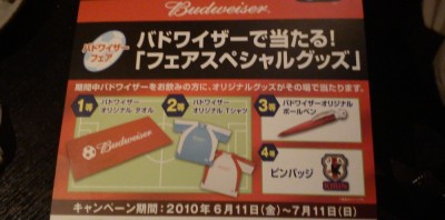 なんとなーくアルゼンチン風なカラーリングにバドのロゴが載っています。しかしバド自体とても久々に飲んだ気がしますが、やっぱり薄いね・・・