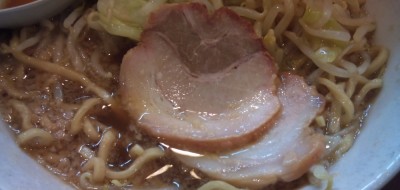スープは甘めの醤油が強くて、トンコツはほんのりって感じ。ニンニク抜きにしたので、結構マイルドな味わいですが、当然二郎には及びませんね・・・