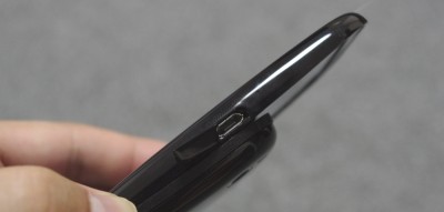 MicroUSB のコネクタは本体右側にあり、プラスチックのフタで綺麗に隠れるようになっています。Xperia X10 よりも開けにくく、閉めにくいですが、ケーブルを挿すときに邪魔をすることはありません。