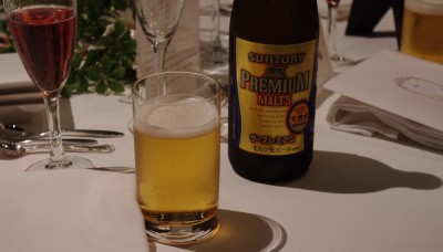 開宴前からビールを持って来てくれたので、早速ほとんどのテーブルはプレ宴会がスタート!! 新郎新婦の入場までに、このテーブル(6人)では、瓶ビールが9本ほど空いたような、空かなかったような・・・