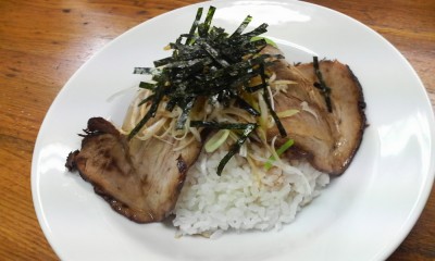 こちらはミニチャーシュー丼。チャーシューは結構薄切りでトロ味はナシ。カウンターに置いていた見た目が良さげだったのでチャーシュー丼も付けましたが、なんかこちらは失敗した感じ・・・