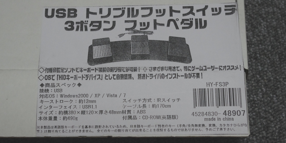 3連式のフットペダルです。あきばお~で2,999円とそれなりに格安だったので E5830 と共に買い物かごへ・・・