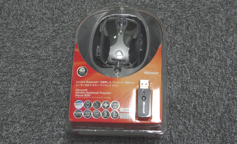 ThinkPad ネタはひと段落。買い物ネタが続きますがご容赦あれ(笑)。あきばお~とは別にマイクロソフトストアなるところで、アウトレットで出ていた Microsoft Wireless Notebook Presentater Mouse 8000 を購入しました。ThinkPad の登場によって紹介が遅れました・・・