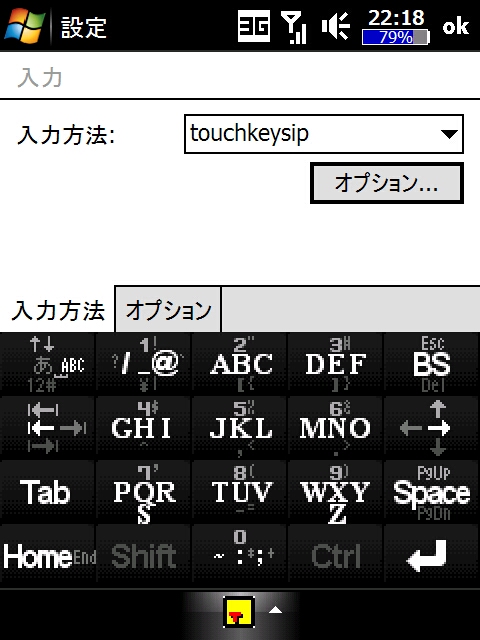 すると、SIP の選択で touchkeysip を選択すると、一見単なる10キーっぽい画面になりますが、実は iPhone のように、上下左右に動かすと別の文字(大体は子音)が選択できるようになり、入力が格段に高速になります。