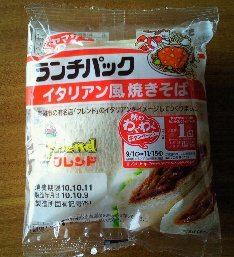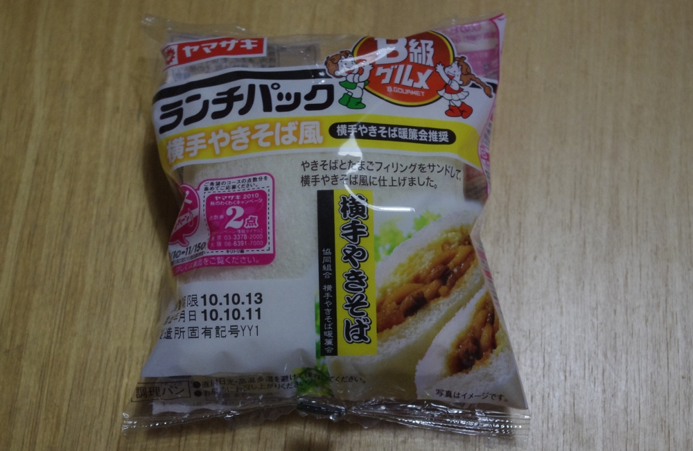 Posted in Foods, ひとりごと ランチパック B級グルメ Author: 管理人 Published Date: 2010/10/16 Leave a Comment on ランチパック B級グルメ 先週ですが、新潟にお住まいの友人からケータイにタレコミがありました。 時折私も取り上げているランチパックの新潟限定モノ。イタリアン風やきそばが入っているそうな。イタリアンとは、新潟で有名な焼きそばにミートソースをかけたもの。意外に美味しそう♪ で、私も近くのスーパーで見つけました。最近はやりのB級グルメ、横手やきそば風。実際は焼きそばと卵の組み合わせってなだけだったりしますが、想像よりもランチパック向き。美味しかったりします♪ しかし、コチラの特設サイトを見ると、すごい種類があるんですね~ Author: 管理人