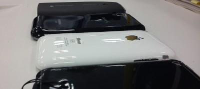 厚みはやはり iPod Touch が薄いです。カバー装着でも他より薄い。下側の出っ張りを除けば Galaxy S はなかなか薄いですね~