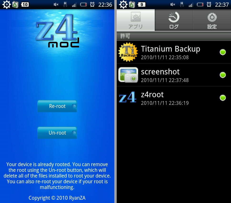 - X10 (OS 2.1): z4root でワンクリック