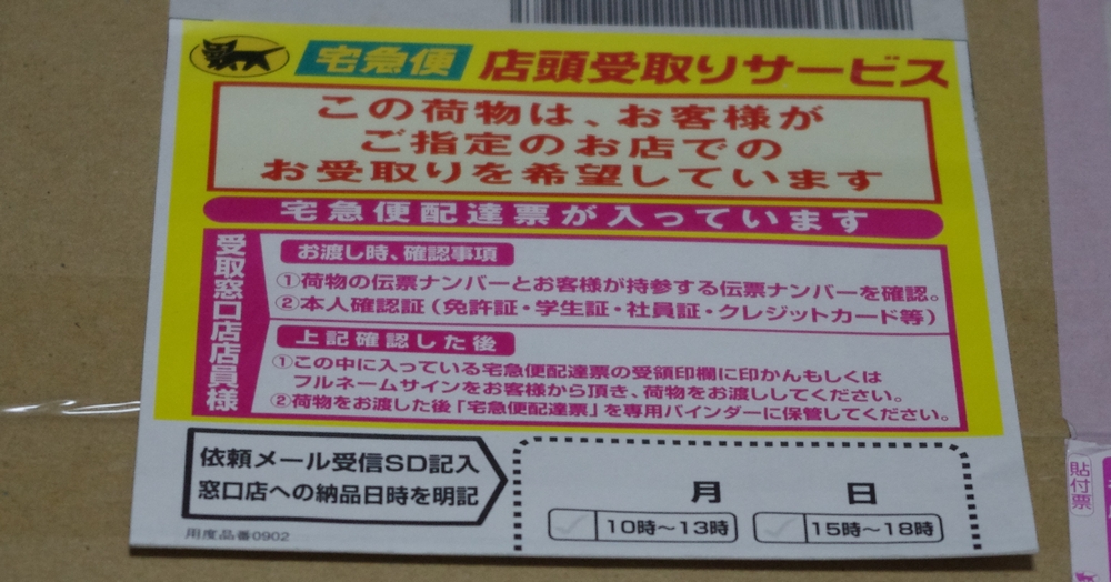 今回はヤマト運輸での配送だったので、近場のファミリーマートに転送して受け取りをしました。このサービス、とっても便利ですな♪