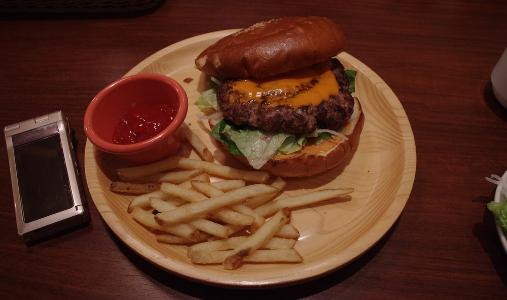 巨大ですが、なんとか噛み付ける。ジューシーな感じはちょっと弱いけど、味は悪くないです。私はこれにサラダバーとドリンクバーをつけました。