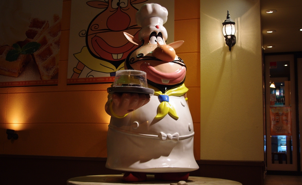 最近妙に集合がかかることが多いB級グルメ隊ですが、土曜日の夜は「ハンバーグ大魔王」というハクション大魔王をフィーチャーしたファミレス(藤沢柄沢店)に潜入してきました。