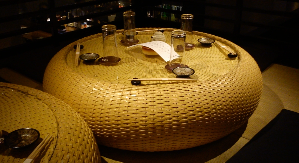 空中庭園と呼ばれる2階(2階にあるお店なので、実は3階?)。丸い一風変わったテーブルが3つあり、お座敷でくつろげるような空間になっております。