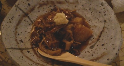 早々にビールを止めて、日本酒にしました。豊盃という青森の日本酒。非常に飲みやすく、危険な香り・・・。これはウマイ!!
