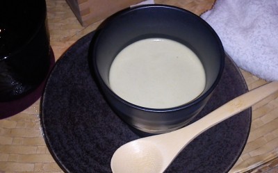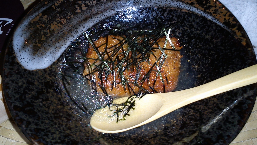 鯛のクリームコロッケ。和風な出汁に浸かったクリームコロッケはクリームと衣のマッタリした洋風な味わいと、鯛と出汁の和風な味が合体。味付けはちょっと濃い目ですが、お酒のつまみとしては絶品!! とても美味しかったです。これはまた別途食べに行きたい位!! もう1個欲しかったカモ?