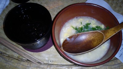 〆な玉子雑炊。なんか魚のエキスがタップリらしいのですが、焼酎は中々(麦)と喜六(芋)と進んでもう良く味わかりません(笑)。