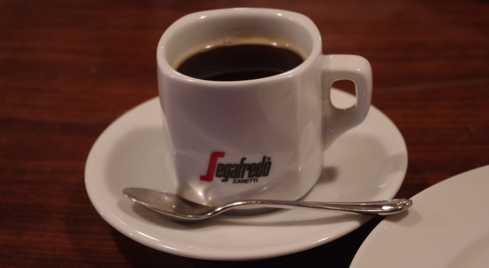 最後にコーヒー。これまた美味しいコーヒーでした。カップが Segafredo なのが気になりましたが、前菜のスープの器も Segafredo でしたね。
