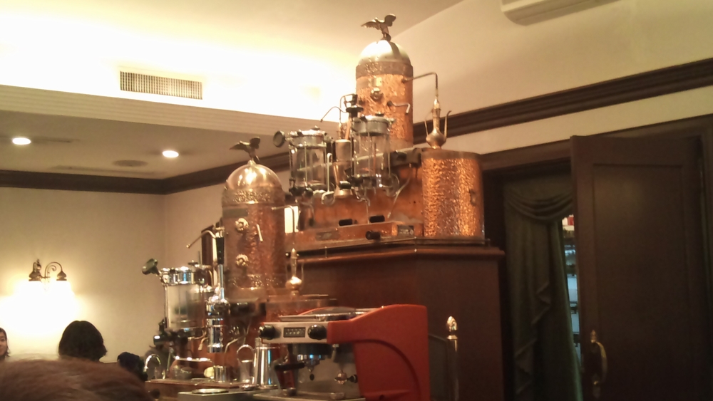 なぜかエスプレッソマシーンは2段積み。上のは古いのでしょうか? ビンテージな雰囲気です。