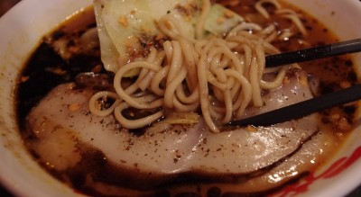 しかしこのラーメンは一般人にはちょっと辛すぎるんじゃないかな。醤油ラーメンの風味が全然感じられない状態になっています。そして、辛さもラー油と唐辛子ベースで、あまり深みが感じられない。もう少し高級な唐辛子をブレンドするとか、山椒等の他の香辛料とかで深みを出さないと、ただ辛いだけのラーメンになってしまいます・・・っていうか、なってた(笑)。
