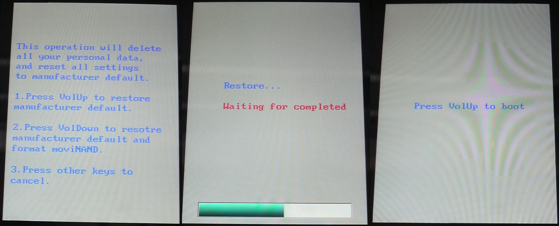 - ボリュームアップボタンを押せばシステムだけ復旧(4GBの内部ストレージはそのまま)