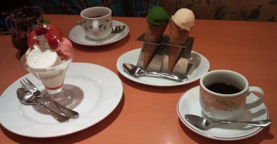 私はバニラアイスとコーヒー。自分がニンニク臭い(爆)
