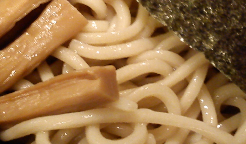 麺は太め。コシ重視な感じですが、ちょっと芯が残っている感じ。細麺なら「アルデンテだ♪」と言いたいところですが、太麺に芯があると、ちょっと食べにくいですな。