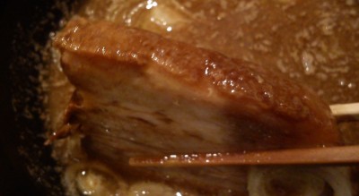 チャーシューがとても大きい。厚さも普通の3枚分はありそう。まるでステーキです(笑)。鹿児島産の豚だそうですが、作り方も丁寧で、中までしっかり味が凝縮されています。これは高評価!!