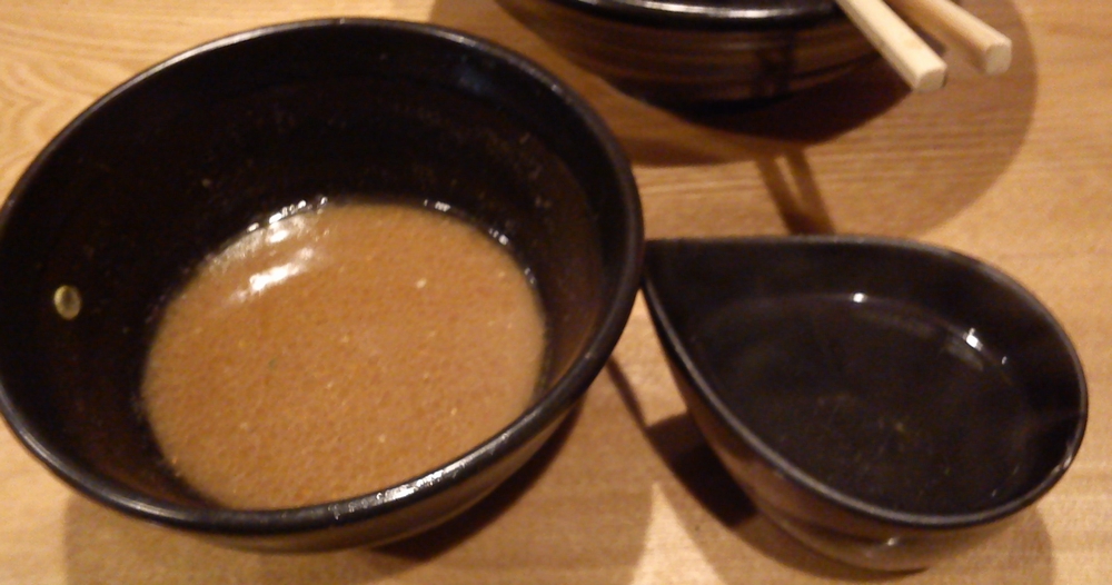 割りスープは麺を茹でたあとの茹で汁のようです。割と無味な感じ。蕎麦屋で言うところの蕎麦湯でしょうが、小麦粉ベースな麺じゃね・・・大して風味出ないです。
