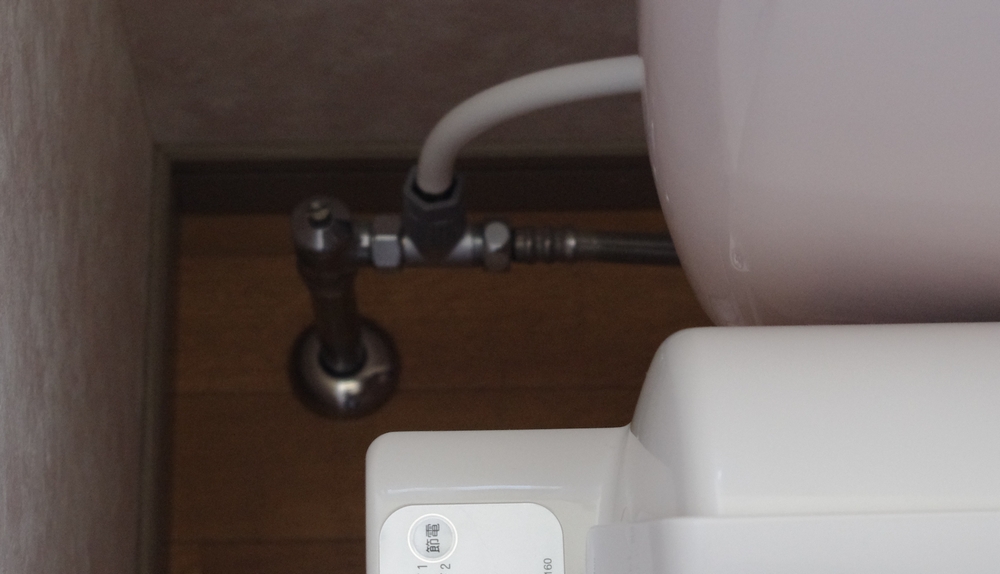 我が家のホースは最初から可変式ホースなので、付属のホースを使わずにそのまま使います。止水栓とホースの間に付属の分岐栓を挿入。分岐先にこれまた付属の便座への給水ホースを繋いで、便座側の保温タンクに接続。アース線を繋いだらコンセントにプラグイン!!