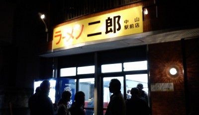 昨年末に我が家の近く(っていっても5kmほど離れています)に二郎がオープンしたとのことで、偵察に行って参りました。中山駅前店ということで、我が家からは車で15分かかるかかからないか程度です。19:00 過ぎに到着。約20人ほど並んでいましたが、30分ほどで着席できました。