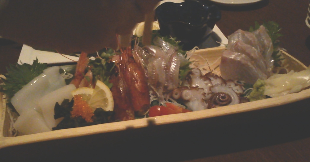 刺身の盛り合わせはこの日のオススメ。新鮮でおいしかったです。