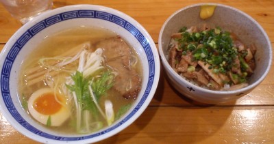 メニューとしては色々あって、結構悩みました。が、塩がおいしいらしいので、塩ラーメンに。で、750円のAセットにすると、ラーメンが少し小ぶりになって、ミニチャーシュー丼が付くというので、こちらのセットに。