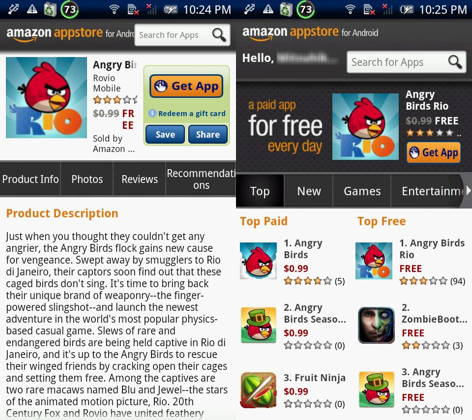 初日には Angry Birds RIO が無料ってなわけで、早速トライしてみました。「Get app」をクリックすると、メールアドレスもしくは電話番号(SMS 用)の入力ダイアログが出ます。メアドを入れると、管理アプリダウンロードの URL がメールで送信されてきますので、Android 端末で受信して、アプリをインストールします。