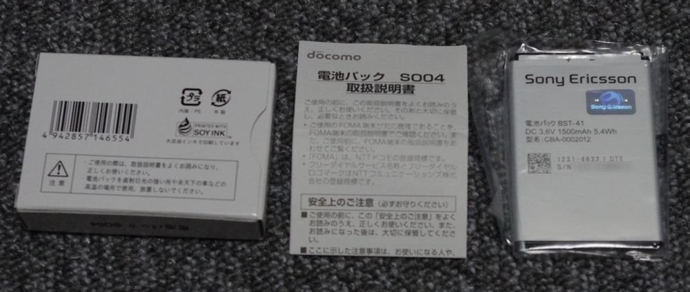 もちろんソニエリ純正バッテリーが入っています。通常だと4,000円程度するもの。さすがに、スマフォのバッテリーでこのプレゼント特典をやってると docomo も損失でかいと思ったのか、6/30 でこのサービスは終了となるそうです。ま、ガラケーの小さなバッテリーほど安くないですからね・・・