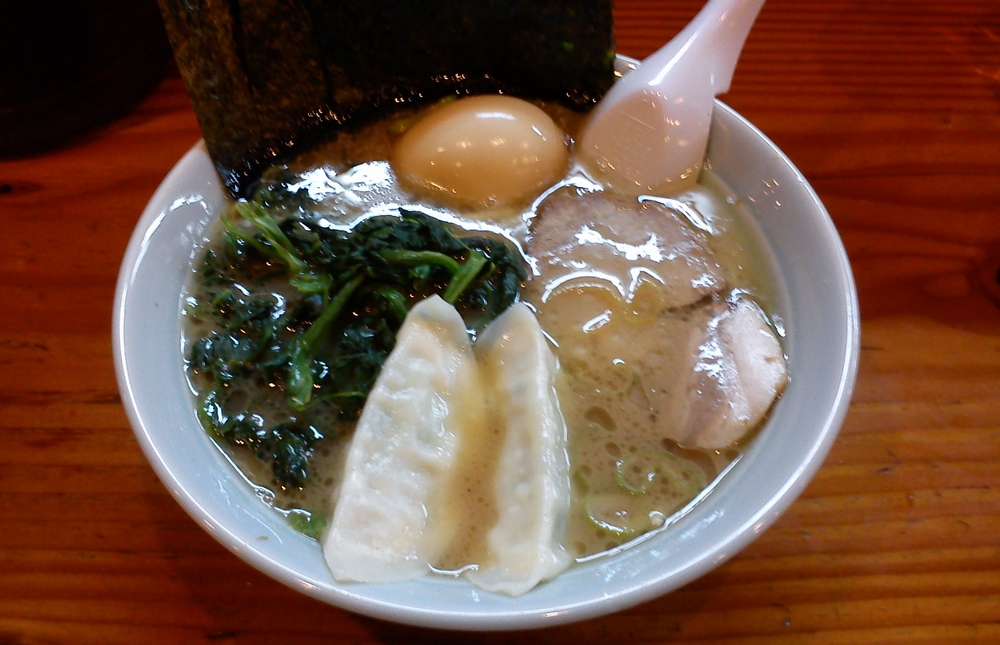 トッピングのたまごも悪くない味わいです。驚いたのはオマケに付けた茹でギョーザ。味がシッカリ付いていて、想像よりも家系ラーメンに良く合います。ってか、旨い♪