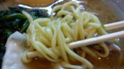 スープ表面に浮かぶ脂がすごいのですが、全然コッテリではないです。トンコツの旨みが引き立つように、ベースの醤油は薄め。マイルドではないのですが、コテコテではないところがとても好感が持てます。固めでオーダーした麺はこれぞ家系というコシ(予想通り酒井製麺だそうです)。チャーシューは固めですが、香ばしい味わいがじっくり楽しめるので、トロトロ系以外イヤって人でなければ美味しいと思えるはずです。